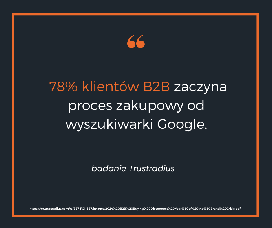 - Większy zasięg i widoczność: Dzięki Google i LinkedIn można dotrzeć do klientów z innych rynków, branż i krajów. Wyszukiwarka Google stanowi punkt startowy dla ponad 78% procesów zakupowych B2B.
