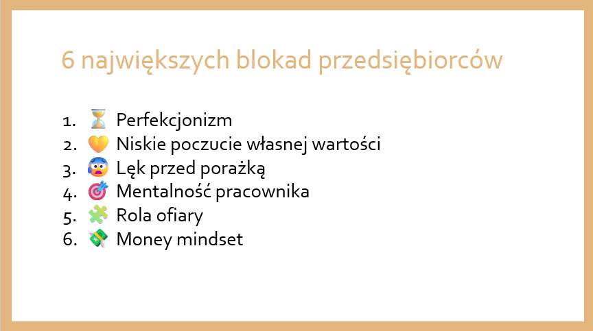 👉 „Blokuje mnie perfekcjonizm, lęk przed oceną i brak wiary w siebie – więc chowam się w cieniu zamiast promować firmę.”